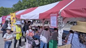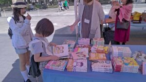 上野の森親子ブックフェスタは、毎年ゴールデンウィークに上野恩賜公園の噴水広場で行われる児童書の即売会です。コロナ禍で一度は中止になったものの、今年は去年に引き続き開催され、我々も5月5日午後から参加してまいりました。